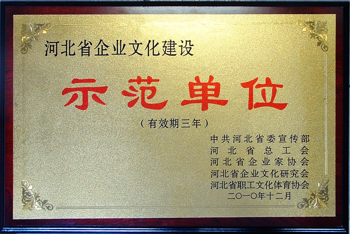 河北省企业文化建设示范单位荣誉